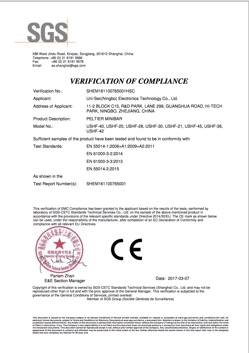 UNI-SEC established in year 2008, Located in Ningbo, China. UNI-SEC is specialized in researching and manufacturing various kinds of refrigerator, including heatpipe minibar, absorption minibar and compressor minibar.  And UNI-SEC has been one of the top grade refrigerator suppliers in Europe, Asia and North America.